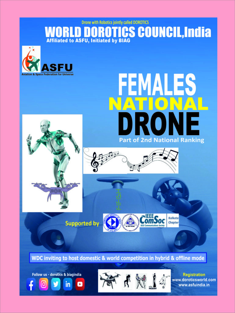 Female National Drone Ranking Download Entry Form Entries close for Domestic institutionsEntries for NRI, OCI, PIO opened upto 22nd May till the national Judge committee sits for evaluation.